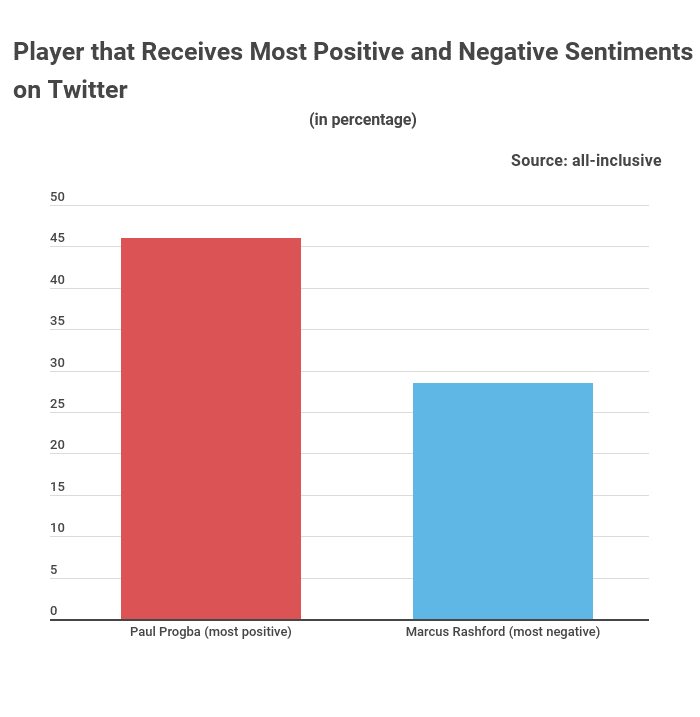 According to Edith Reads, Safebettingsites sports analyst,” Pogba has more than 17,000 mentions on Twitter, with a majority of them being positive. It could be that Pogba is more active on social media and therefore more visible to the public. Or it could be that he is more open and engaging with his fans, giving them a positive impression of him.”