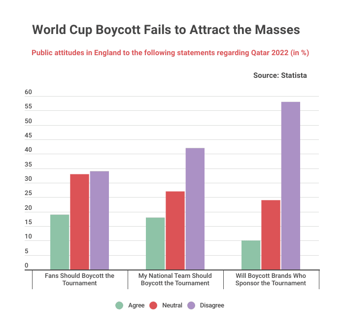 Safebettingsites sports expert Edith Reads commented on the data saying, “This low figure is likely due to the fact that, for many fans, the love of the game outweighs any political concerns they may have. Qatar has promised to improve conditions for workers ahead of the tournament, and with some of the world’s biggest stars set to descend on the country for what promises to be an exciting tournament, it’s hard to resist tuning in.”