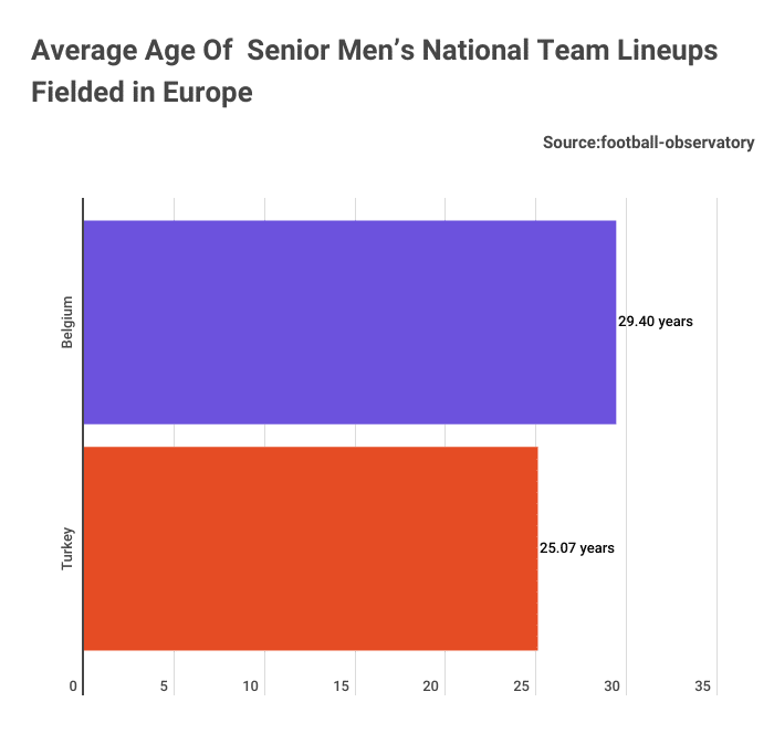 The Belgian national team had the highest average age in Europe during the past year, at 29.4 years old. However, the team settled on younger players for the Qatar world cup with an average of 28 years.