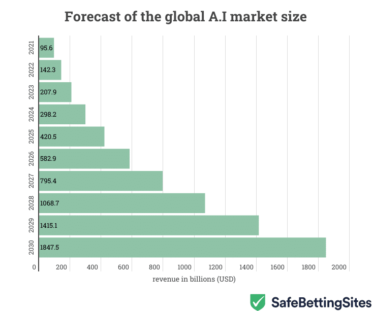 Artificial Intelligence is the latest buzzword in the tech industry. With the ever-increasing popularity of the chat engine ChatGPT, A.I. has become popular in normal households. According to the numbers presented by SecureBettingSites.com, the AI market size is set to $208 billion in 2023.