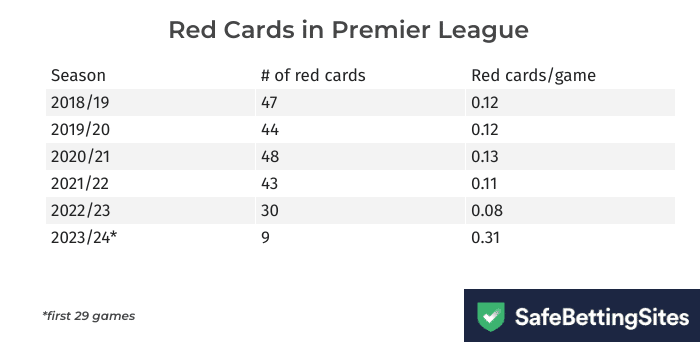 New guidelines regarding time wasting and protests from players in the Premier League have led to a flurry of red cards in the opening weeks of the new season. According to the numbers presented by SecureBettingSites.com, Premier League referees have, so far this season, issued red cards at a rate almost four times that of last season.