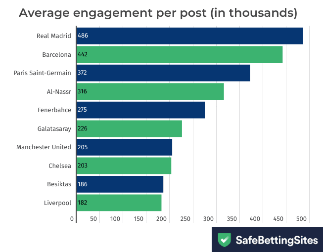 Al Nassr has become one of the most popular football brands on Instagram after signing Cristiano Ronaldo. According to the numbers presented by SecureBettingSites.com, the Saudi club was among the ten football clubs with the most fan engagement on Instagram during the past year. In terms of engagement per post, the club did even better and featured among the top five clubs.