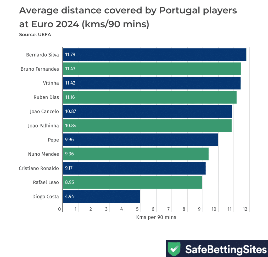 Vyom Chaudhary, editor at SecureBettingSites.com, commented: “The fact that even Pepe, who is 41 years old, has managed to cover more ground on average raises further doubts about Ronaldo’s position in the starting eleven. It would be interesting to see whether Ronaldo keeps his place in the starting eleven in the all-important quarter final clash against France.”