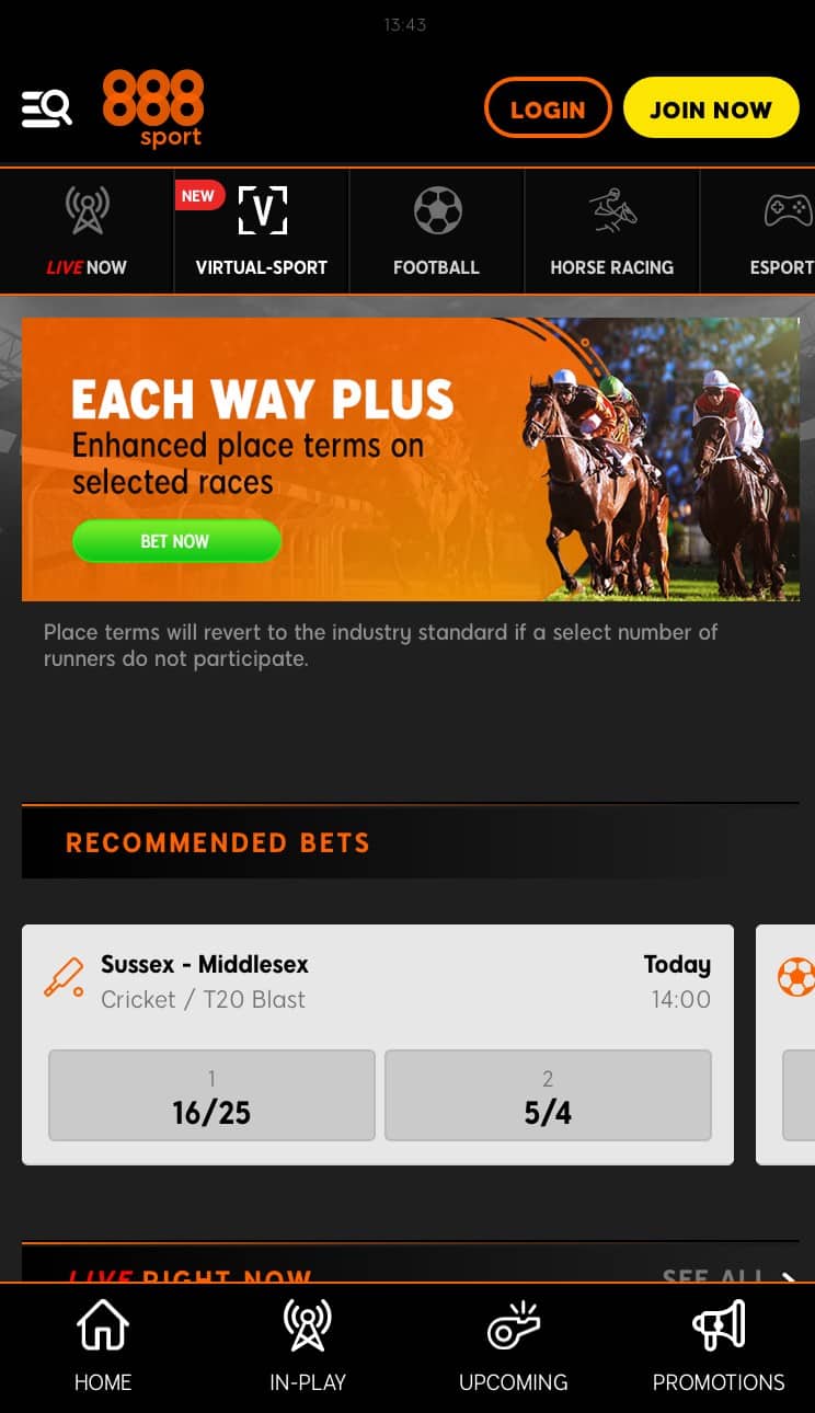 Click on the link above or enter 888sport.com, which will take you to the 888Sport sportsbook site. From there, click on the “Join Now” option, located in the top-right hand corner of the page.