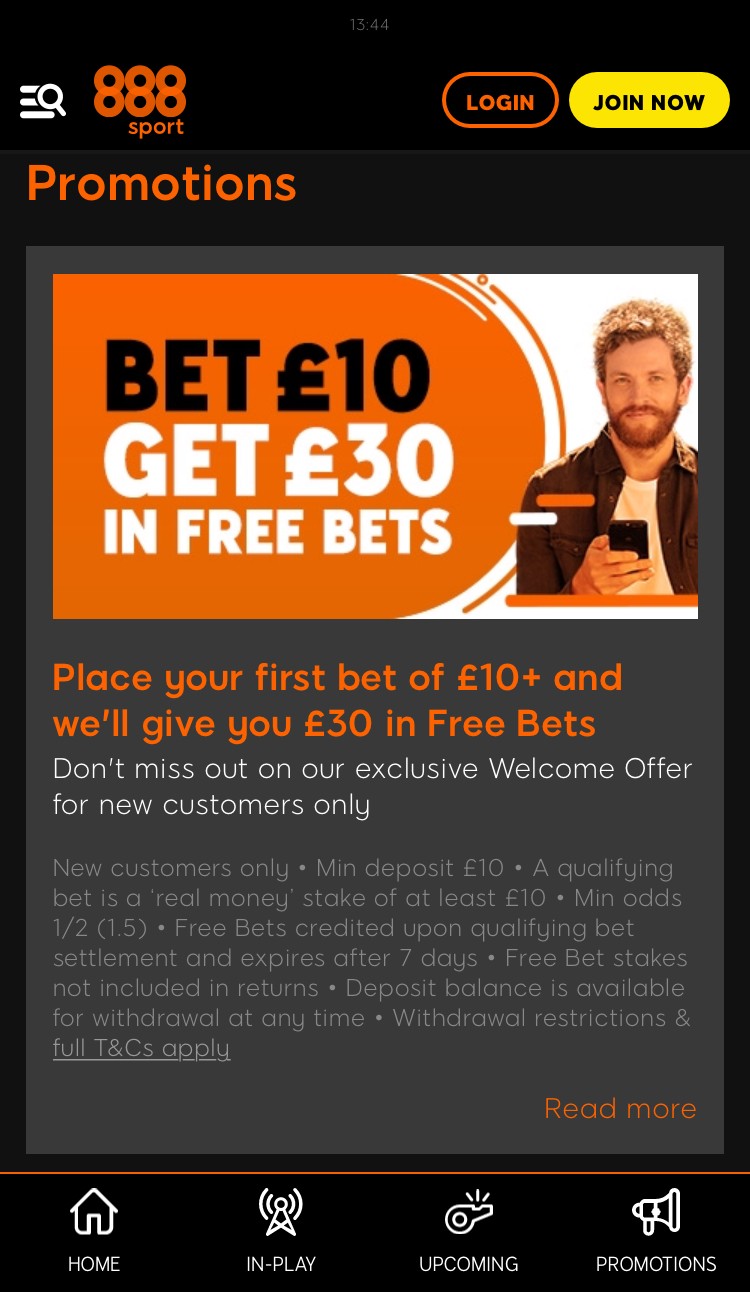 Place a first bet of at least £10, at minimum odds of 1/2 or greater, in order to qualify for your 888Sport welcome bonus.