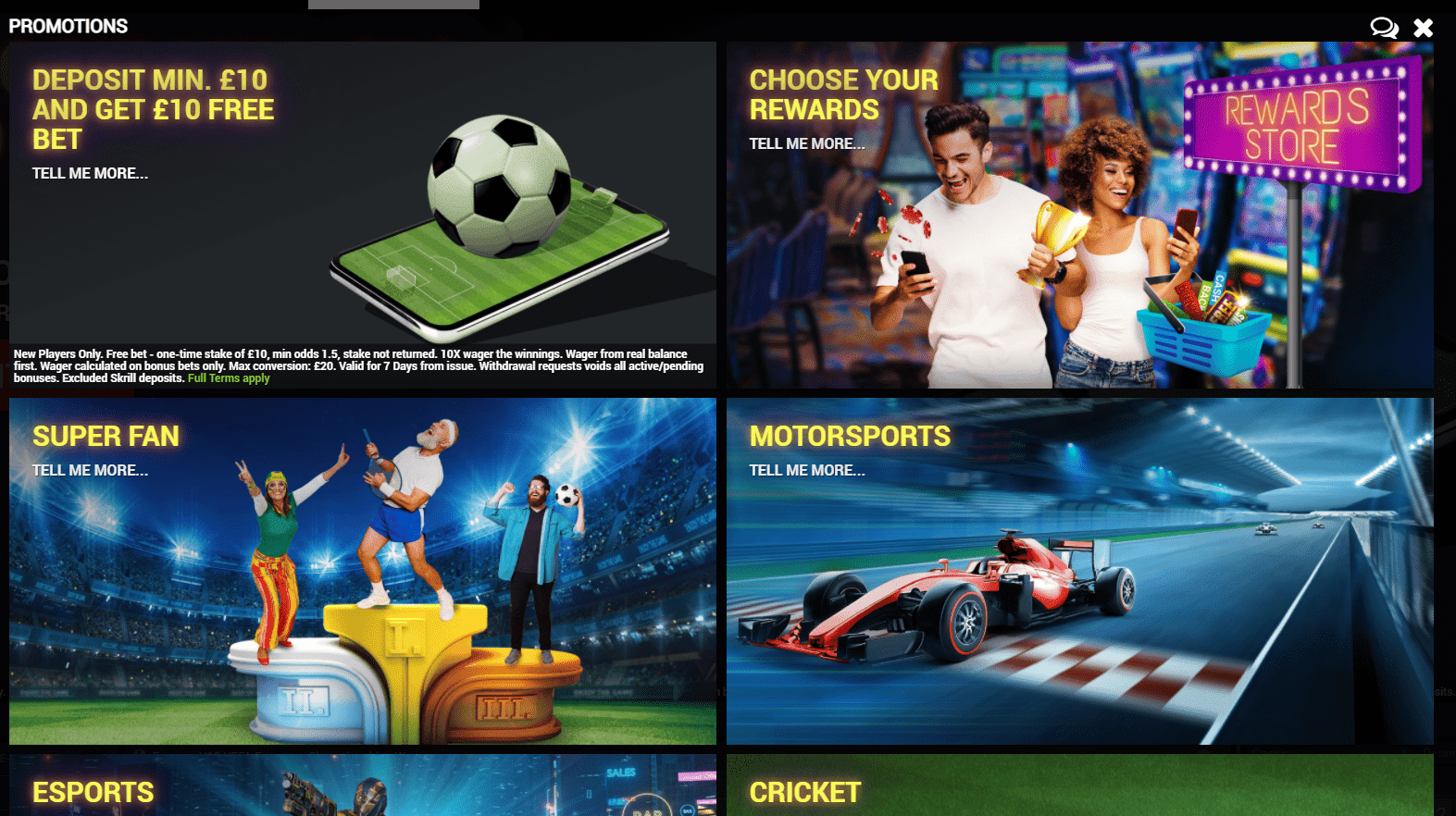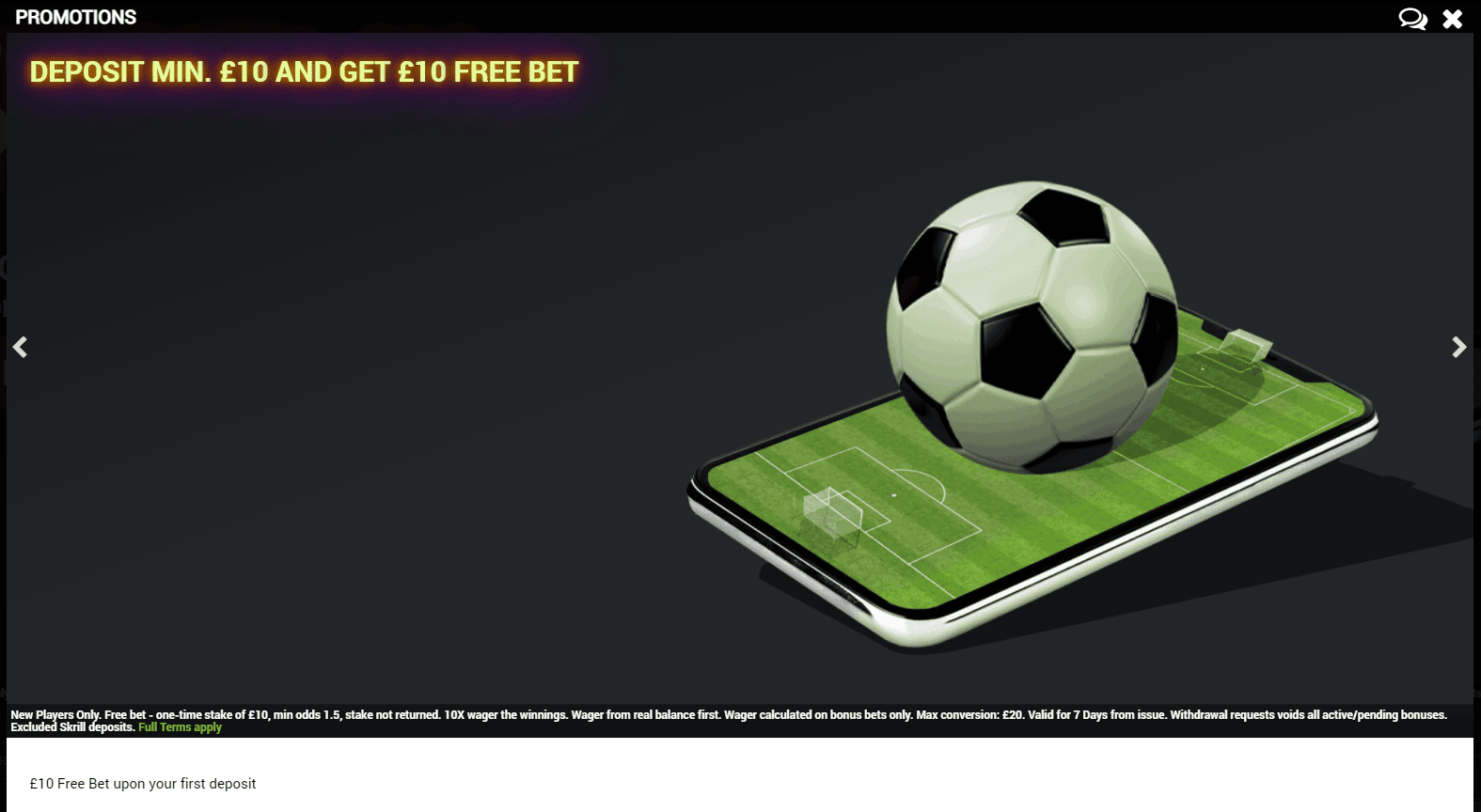 Just like with the majority of sports betting sites out there today, there is a welcome offer available at BetDuel for sports betting fans. This sees you getting a £10 free bet when you deposit at least £10 and make a £10 qualifying bet. As part of this offer, you will need to place a one-time real money bet of £10 at minimum odds of 1.50 in order to get £10 worth of free bets. Deposits made using Skrill will not count when it comes to this offer.