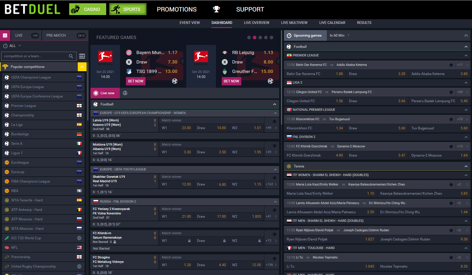 The core focus of the BetDuel platform is on football. Then other popular sports to bet on include horse racing, tennis, and basketball. There is a great range of betting markets for both pre-game and in-play bets, no matter which sport or event you are considering.