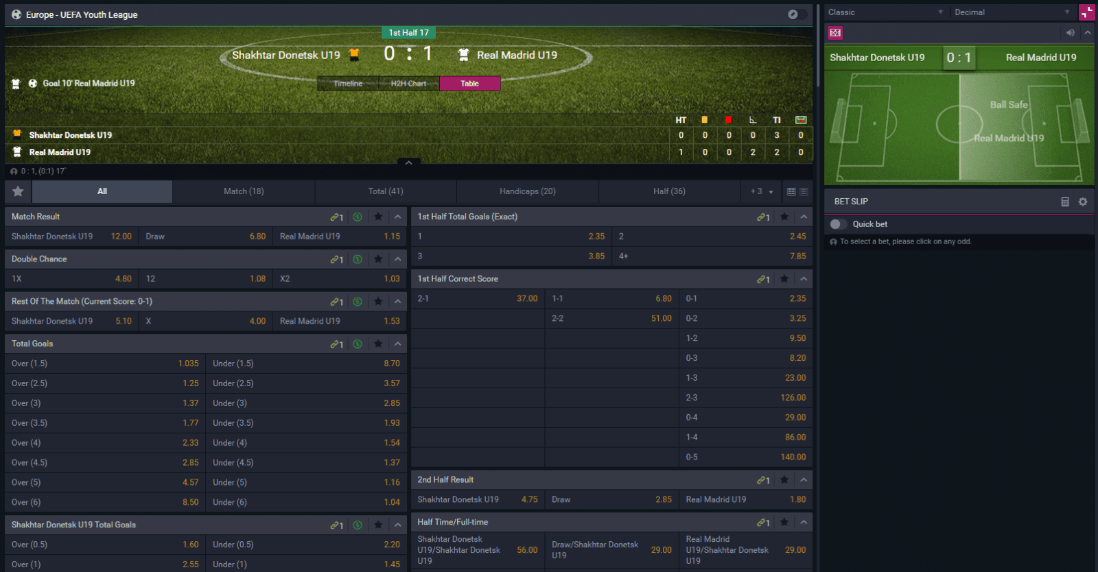 There will also be a graphic showing what is happening in the match, as well as stats that will be updated for you in real-time. The odds update quickly and you have tons of great opportunities to place bets on a given fixture.