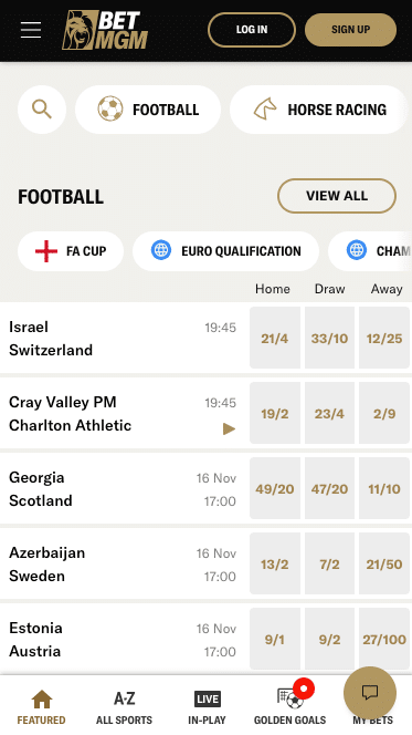 The main ‘other’ aspect of the BetMGM sports betting site you are likely to be interested in is their ‘Golden Goals’ feature. This is a free game that is open to BetMGM account holders only. Each week six football matches will be selected, and you will tasked in predicting the correct score for all six. If you get them all correct, then you win £2 million, which is pretty cool.