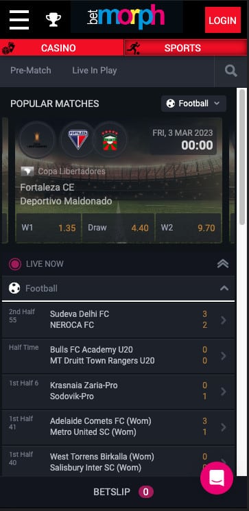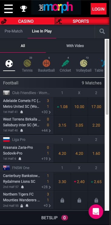 No BetMorph Sport review would be complete without a deep dive into their in play offering, and when it comes to live betting it’s clear that this site has continued the trend of ProgressPlay prioritising their in play service throughout their suite of betting sites.