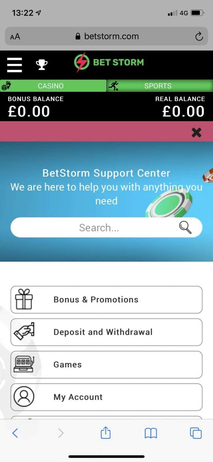 This part of the Bet Storm review is short and sweet as there is no Bet Storm app, and when we asked customer support whether there were any plans to create one, they were unable to tell us. However, viewing the site on the portrait screen of your mobile device replicates the app experience very well.