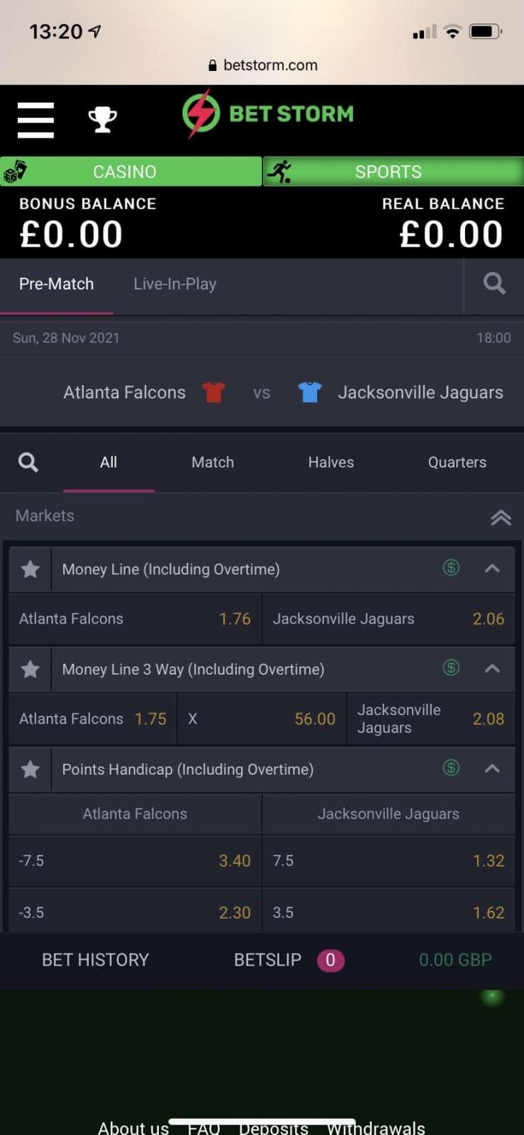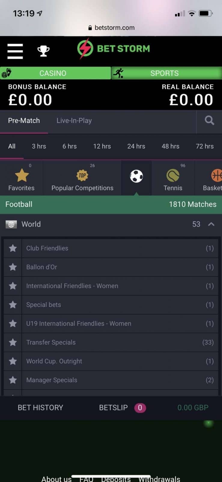 Now it’s time to outline all of the major site features in the next part of our Bet Storm review, with a particular focus on the range of sporting markets on offer and how to place a pre-game and in play bet.