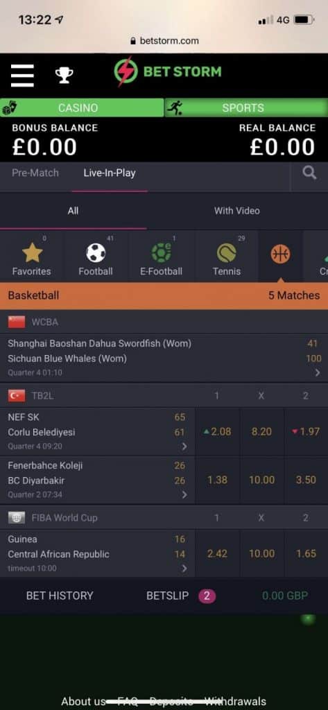 In play betting has become hugely popular, mainly due to the added advantage of being able to use information from a live event to make even more well-researched wagers. And when it comes to live betting, Bet Storm scores very highly.