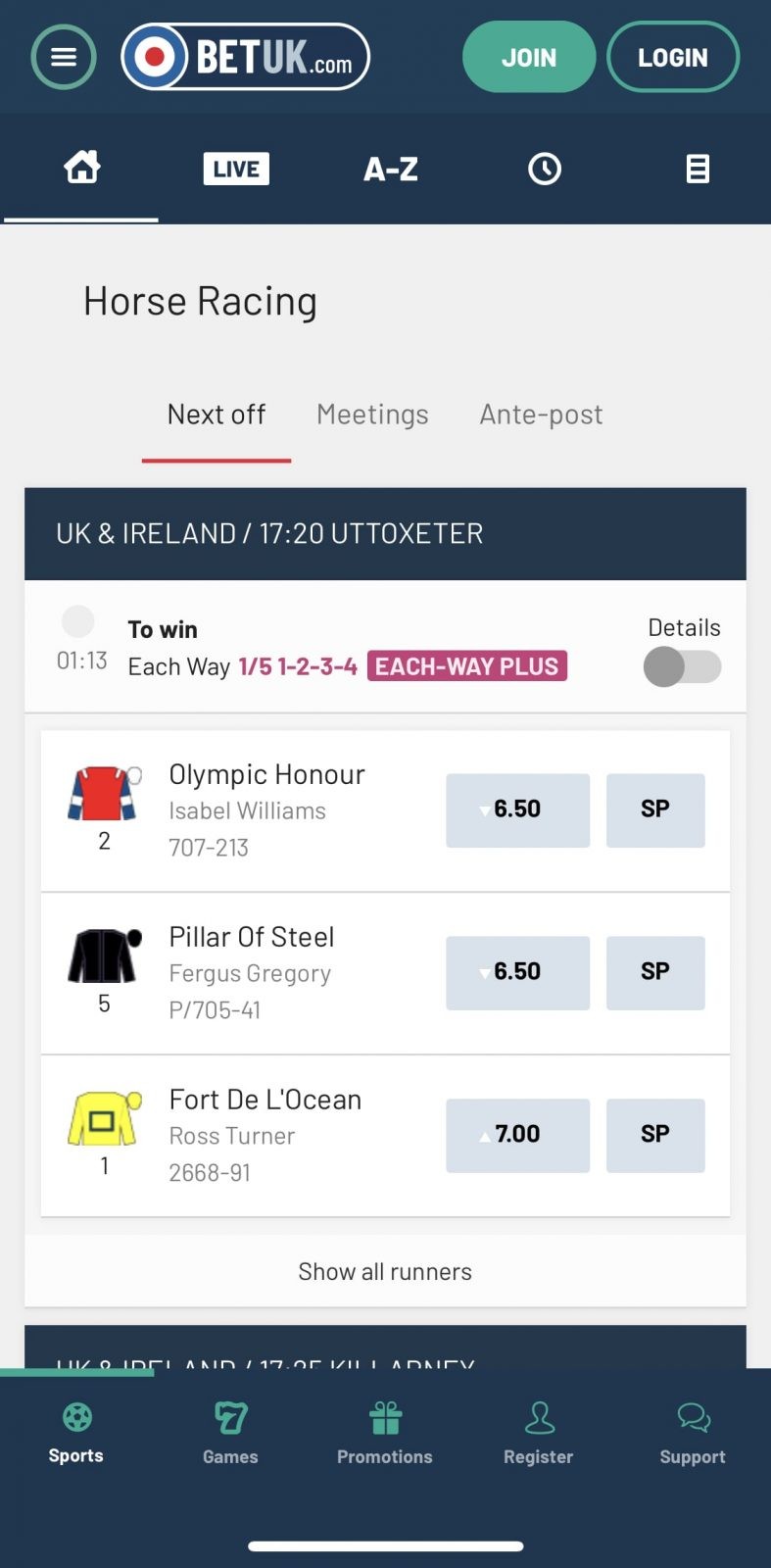 Significant terms: T&Cs apply. New customers, Deposit & Place a Bet within 7 days, and settle a £10 minimum bet at odds of 4/5 (1.8) or greater, to be credited with 3x £10 free bets: 1 x £10 Horse racing, 1 x £10 Free Bet Builder and 1 x £10 Football. Stake not returned. Opt-in required. 18+ BeGambleAware.org.