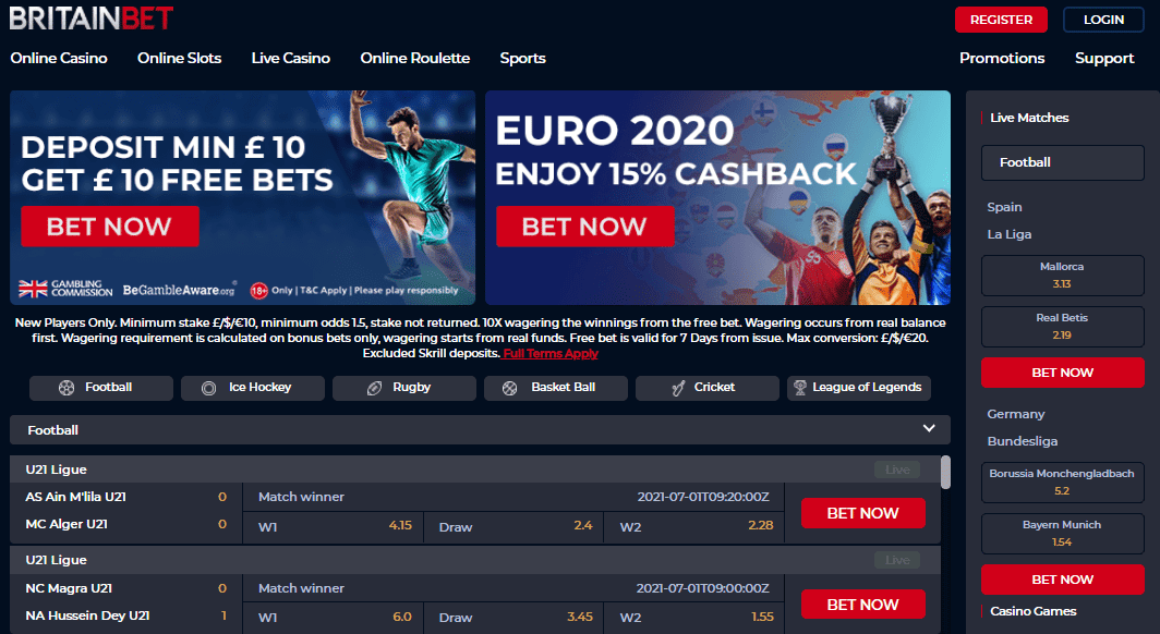 As ever there are some key terms and conditions to look out for when you take advantage of the BritainBet free bet, with the primary one being that customers who deposit using Skrill will not be eligible, so we’d recommend a debit card deposit. And we would also highly recommend checking out the T’s & C’s relating to each offer before you sign up.