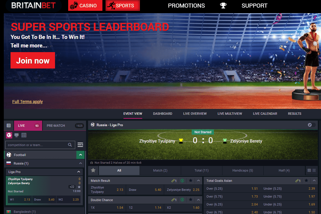 Unsurprisingly, BritainBet does have a casino element but we will be concentrating solely on sports betting for this review. With a decent range of BritainBet promotions, one of the largest selections of sports we’ve ever seen, E-Sports, virtual sports and a number of novelty markets, at first glance, it looks like BritainBet is trying to make a big splash!