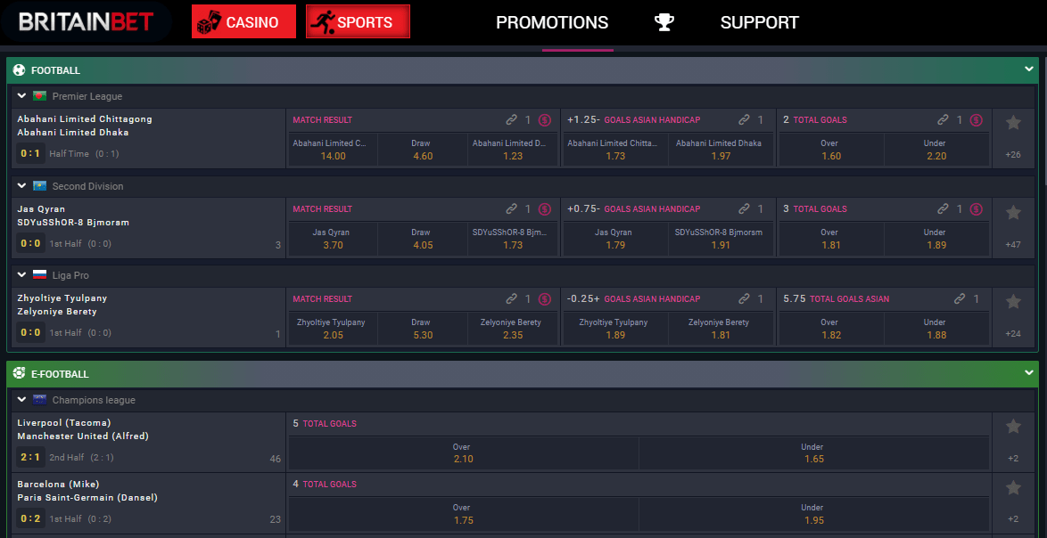 When it comes to the range of football markets we reckon punters will find everything they need at BritainBet, with over 100 outcomes to pick from in the big league and cup matches at home and abroad and a competitive range of markets on the UK lower leagues.