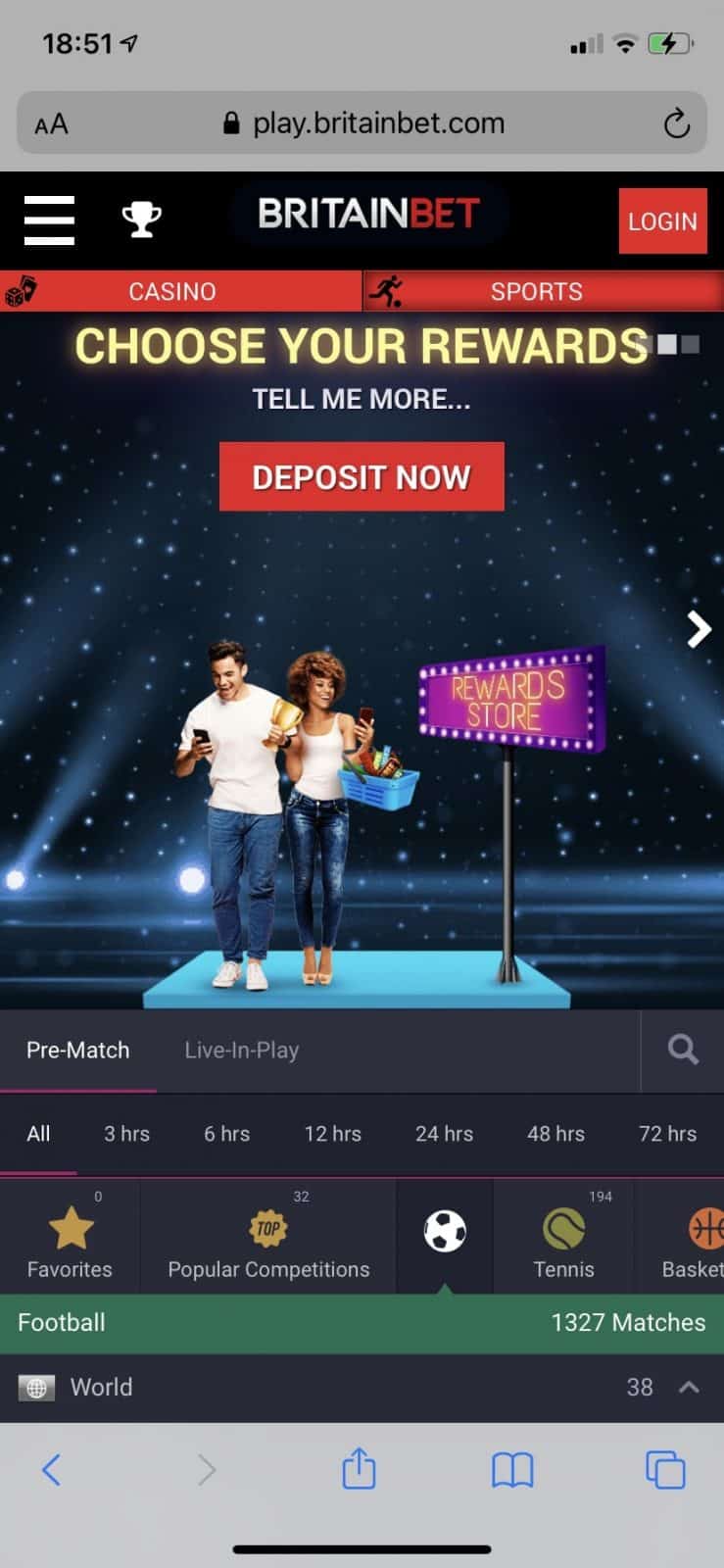 With no mobile app available the only way to sign up to BritainBet is by checking out their home page on your computer or mobile device.