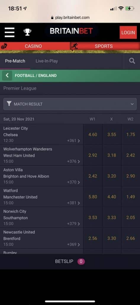There is no BritainBet app and when we asked customer support whether there were any plans to create one, they were unable to tell us. Looking at their sportsbook on your mobile device is also a bit of a mixed bag because while navigation is relatively easy, the ever-present ticker showing advertisements that you constantly have to scroll beyond becomes a bit tiresome!
