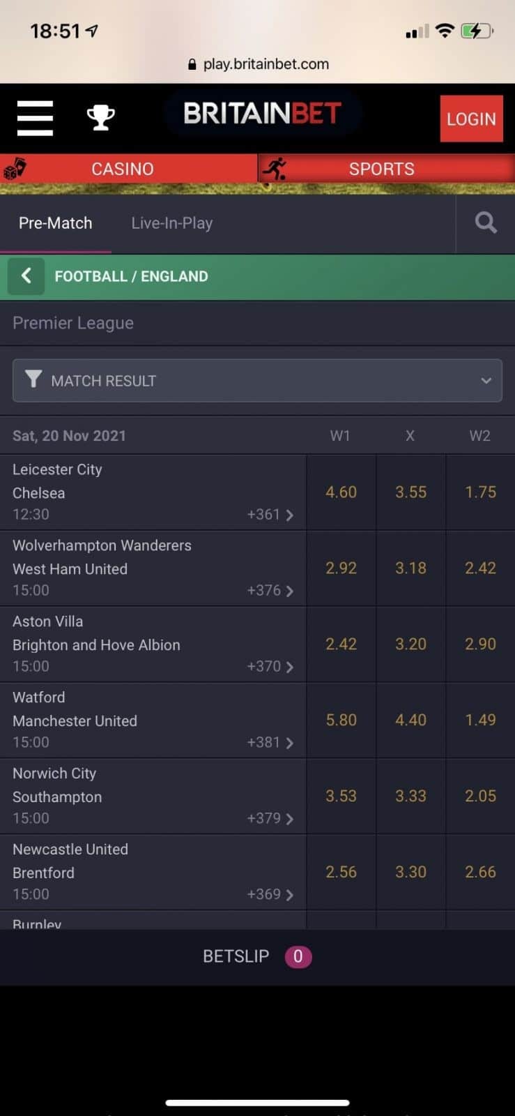 However, it’s when you want to place a multiple bet within a specific sport that the BritainBet site really comes into its own. And that’s because there’s no need to go back and forth between pages to find different matches. Everything just stays on screen and you can click between different markets with ease.