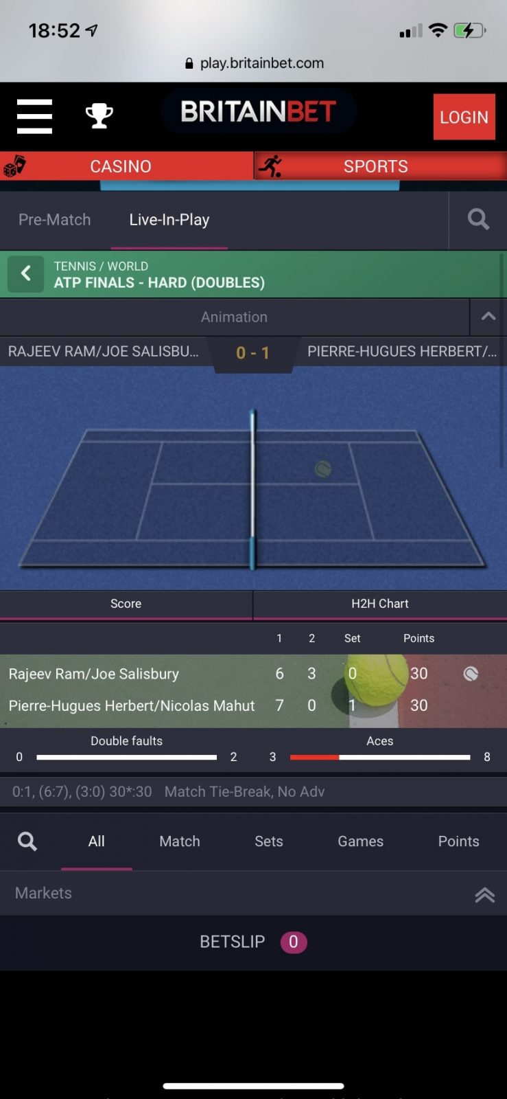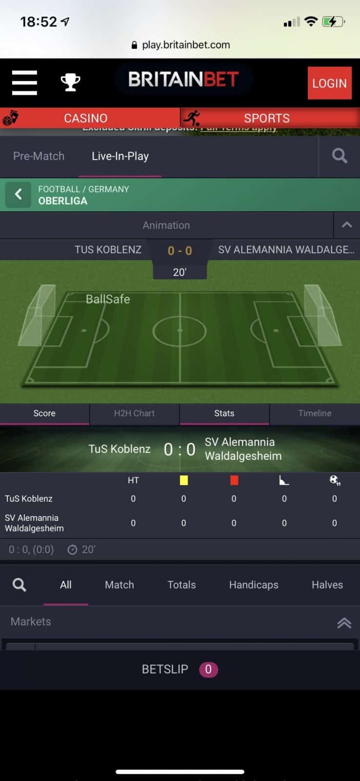 At the time of writing this BritainBet review, live streaming is not an option at BritainBet, but every sport that you can bet on in play is accompanied by a graphic showing the latest score, in addition to up-to-date statistics relating to that particular matchup.