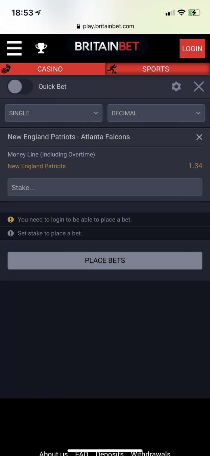 The following step-by-step guide explains how you can create an account, deposit funds and place a bet at the BritainBet sportsbook: