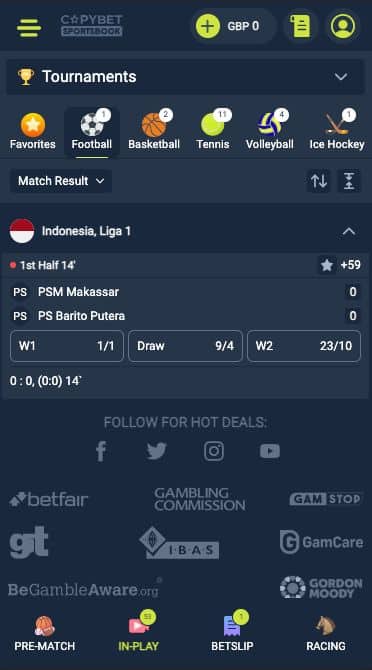 As CopyBet is so hot on football you can bet it is hot on live betting too. In-play betting is available for other sports though, including basketball, tennis, volleyball, ice hockey and table tennis. Both cash-out and partial cash-out are available. We’ve seen better in-play coverage elsewhere, though.