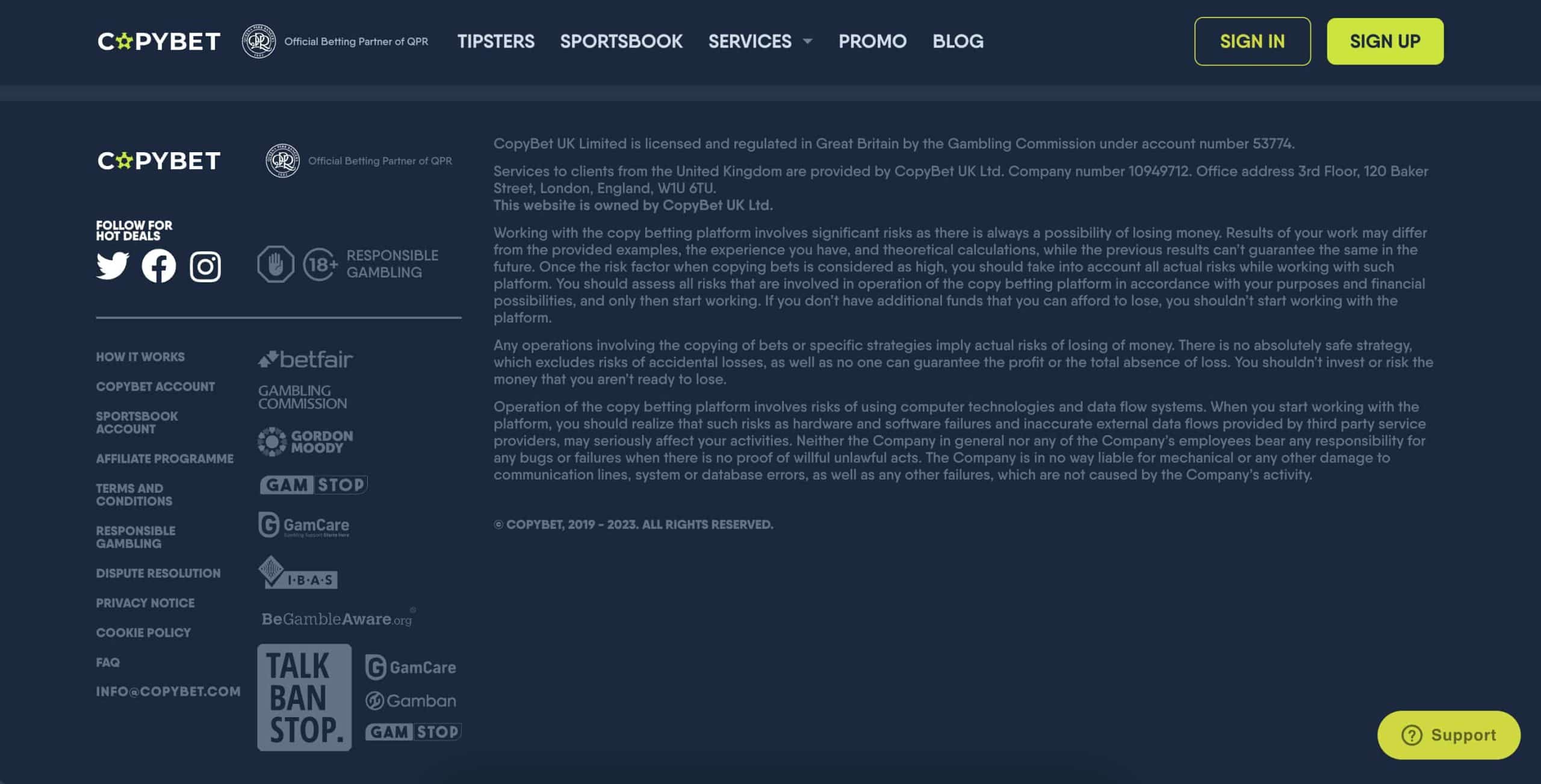 Full details of CopyBet’s privacy policy are available via the site. The site though does not provide details of the levels or methods of encryption it uses. It does though adequately promote responsible gambling, with links available to helpful organisations such as Gordon Moody, GAMSTOP and GamCare.
