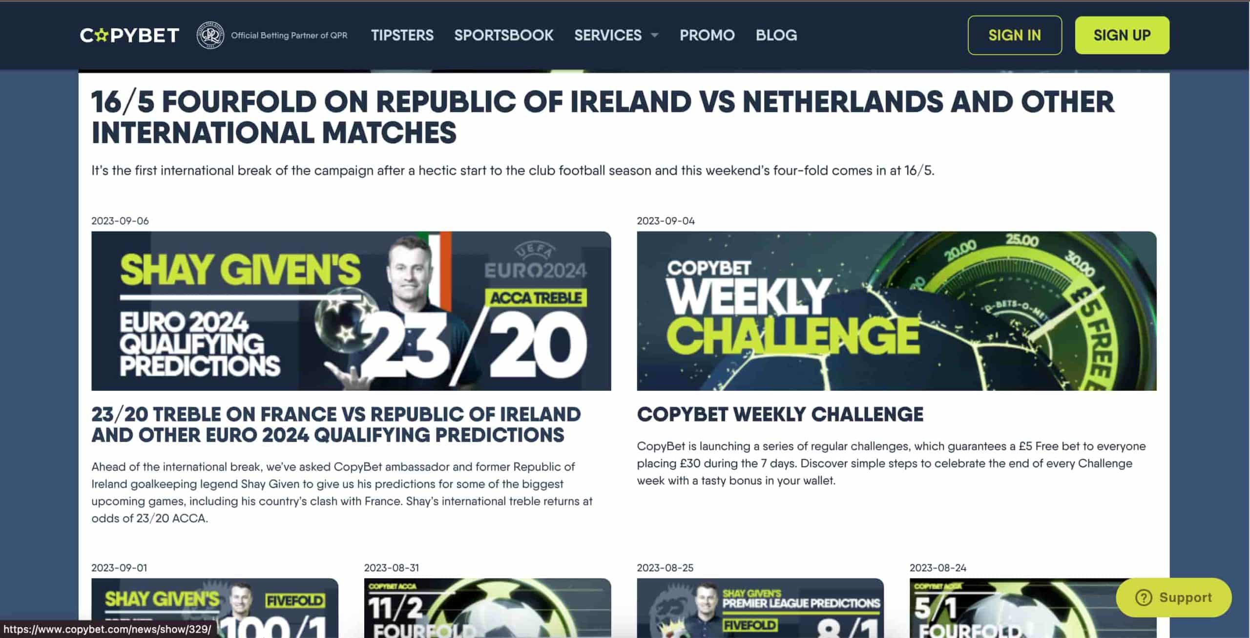 CopyBet also runs other promos for regular site users. For example, as the site is an official betting partner of EFL Championship side Queen’s Park Rangers, you will receive a free, no-deposit bet that you can use on the next QPR game. Just select QPR’s match and the bet you want to place and your no-deposit free bet becomes available. Note that this is a one-time only offer.