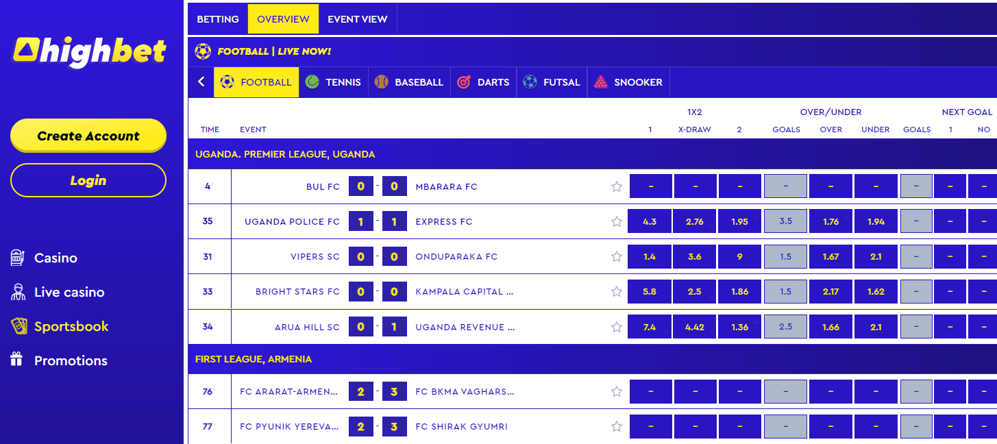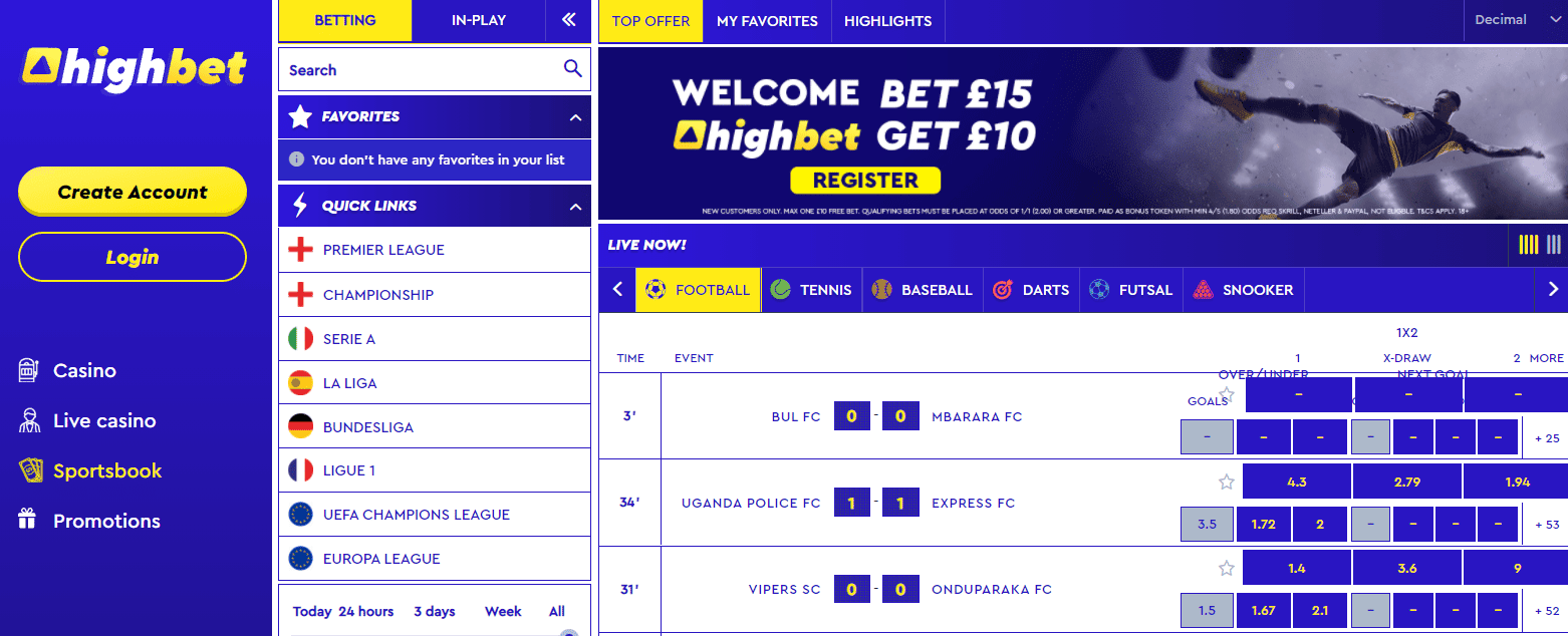 When it comes to other live betting opportunities Highbet bettors are also well catered for with over 10 sports available at pretty much every time of the day, as well as live E-Sports.
