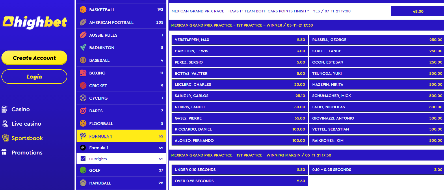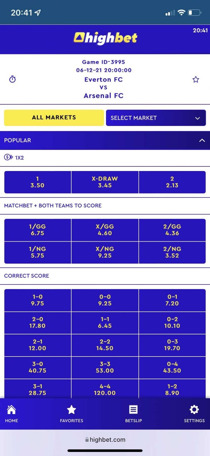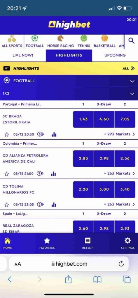 And speaking of football, when we were putting together this Highbet review we were hugely impressed with the range of leagues you could bet on with over 1,500 games from over 60 countries. The most popular matches feature over 350 markets but even in a match from the Cypriot second division, we found over 100!