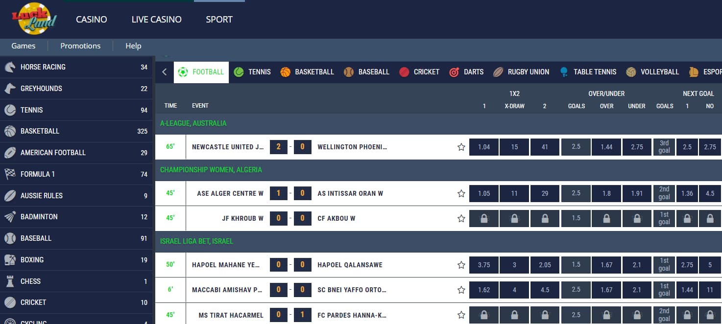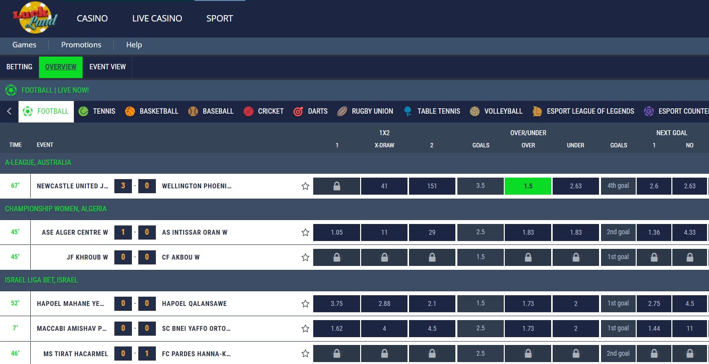 You may not be surprised to learn that football takes priority with LuckLand’s live betting section, as is the norm with most sports betting site’s live betting sections. This is usually because there’s always a football match going on some place in the world, not matter the time of day!