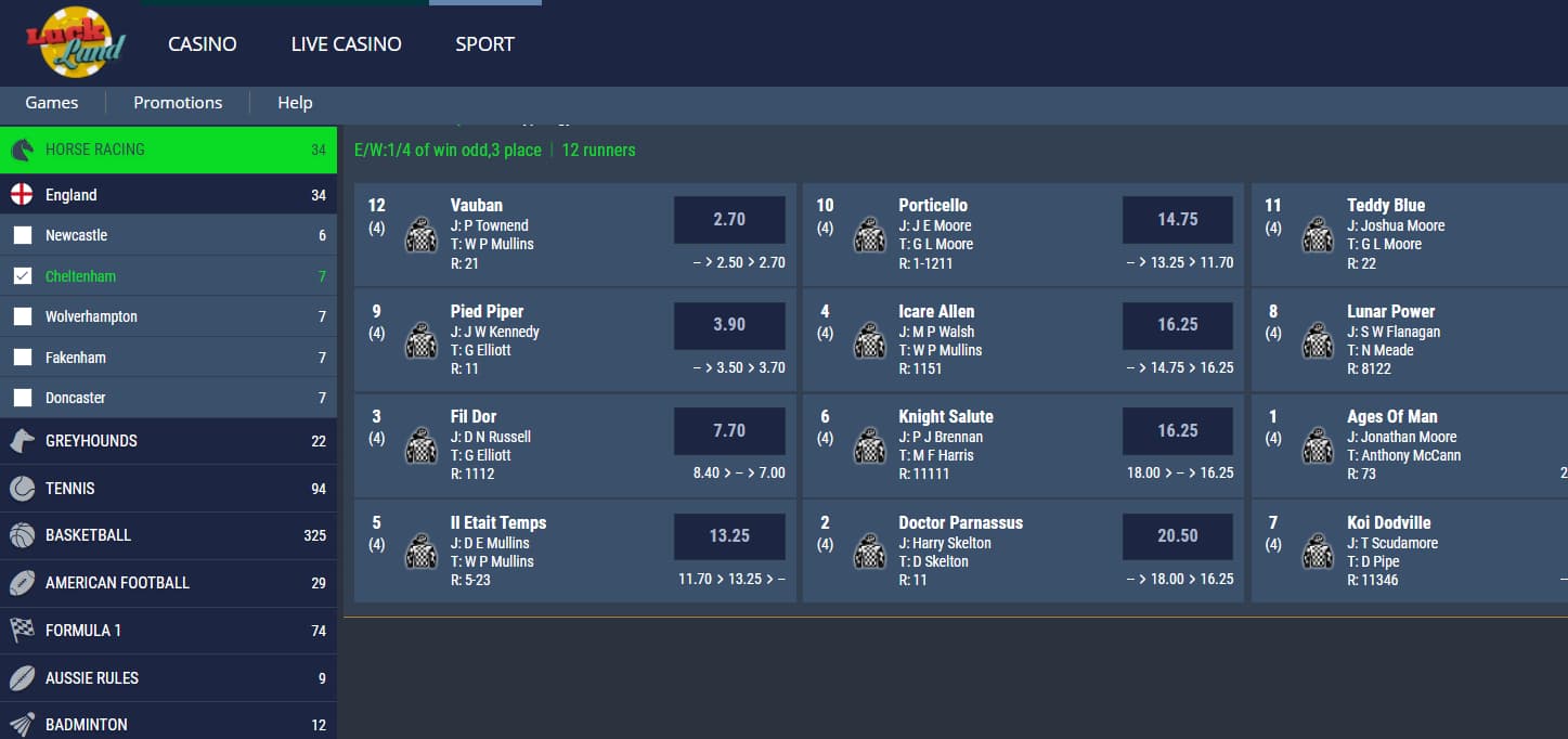 The main sporting attraction at LuckLand appear to be football, horse racing, greyhounds, tennis and basketball. The global ball game is definitely number one at LuckLand, with over 1,000 football games available to bet on at any one stage. That’s approximately five times more than any other sport at the site.