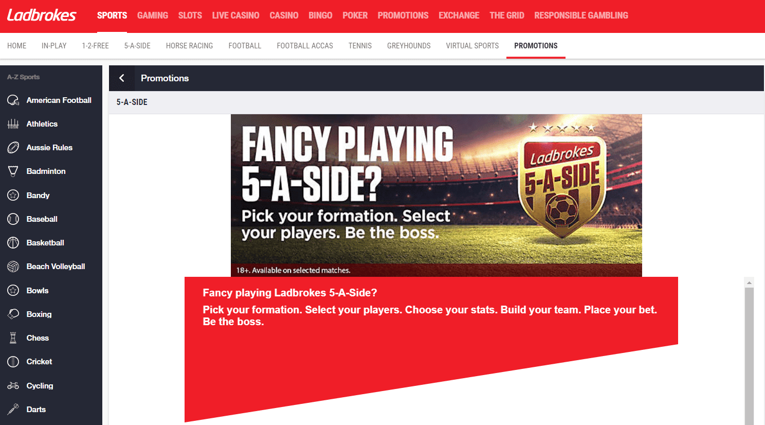 Bet £25 or more get a £5 free bet