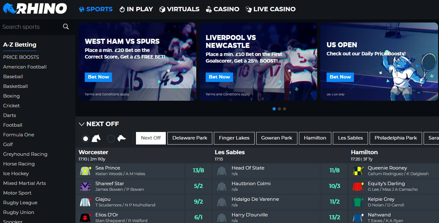 If you read our reviews on a regular basis (and why wouldn’t you?) then you are probably going to make a decent guess on what our Rhino Bet review is likely to say next … that football takes priority over all other sports at Rhino Bet. Well … for once this is not the case! Here, it is horse racing that takes priority, which – as this is the 2020s – is a bit of a surprise!