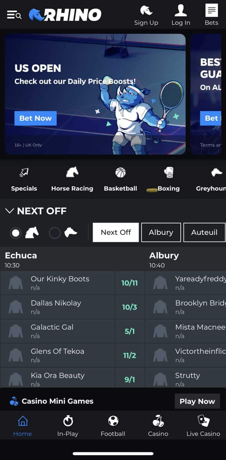 If you don’t like bespoke apps eating up your phone space then you can still use the Rhino Bet app on your phone or tablet via a browser. Just ignore the constant prompts about downloading the apps!