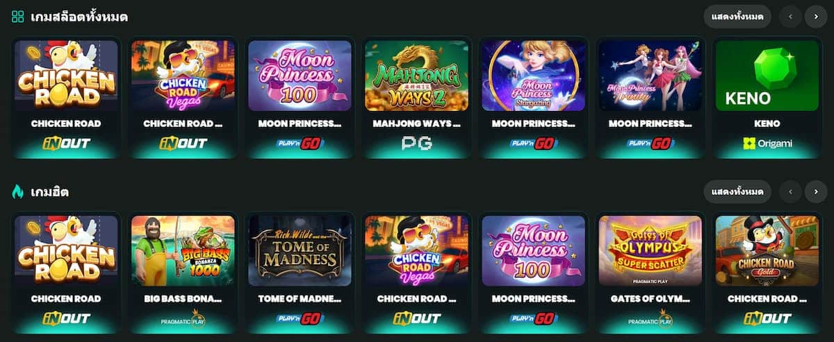 ส่วนใหญ่ในเว็บไซต์ถูกกฎหมายมักจะมีเมนูแยกประเภทของเกมไว้อย่างชัดเจน หลังจากที่ยอดเงินเข้าในระบบบัญชีแล้ว คุณสามารถเลือกเกมได้ตามความต้องการ และเริ่มการเดิมพันได้ทันที