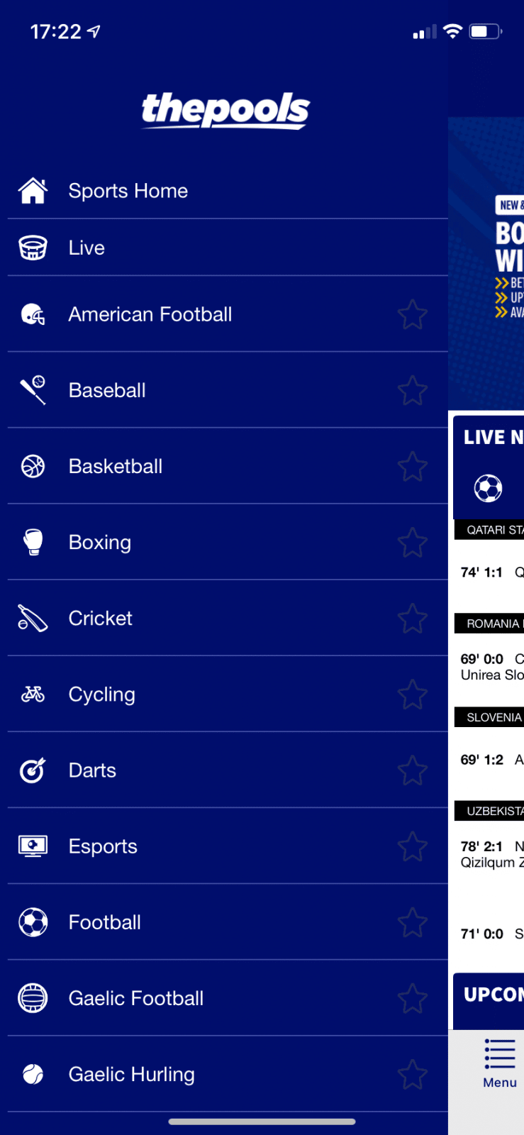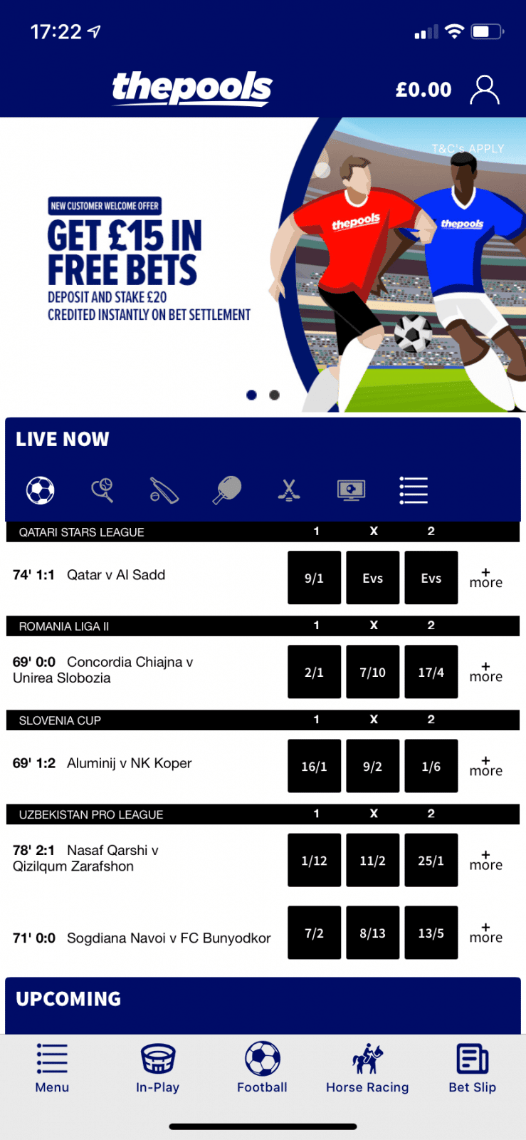 Fans of In-Play betting are well served by the pools betting site, with a massive range of in-running markets on offer covering all the major sports, most of the minor ones and Esports too. And the In-Play button is easily found at the top of the desktop site or the bottom of the app.